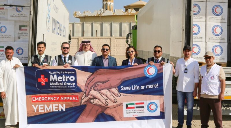 കുവൈറ്റ്: കുവൈറ്റിലെ പ്രമുഖ ആരോഗ്യസംഘടനയായ മെട്രോ മെഡിക്കൽ ഗ്രൂപ്പ്, കുവൈറ്റ് റെഡ് ക്രസൻ്റ് സൊസൈറ്റിയുമായി (KRCS) ചേർന്ന് യെമനിലെ അധാൻ ഗവർണറേറ്റിലേക്കുള്ള നിർണായക മെഡിക്കൽ സഹായം എത്തിച്ചു.
