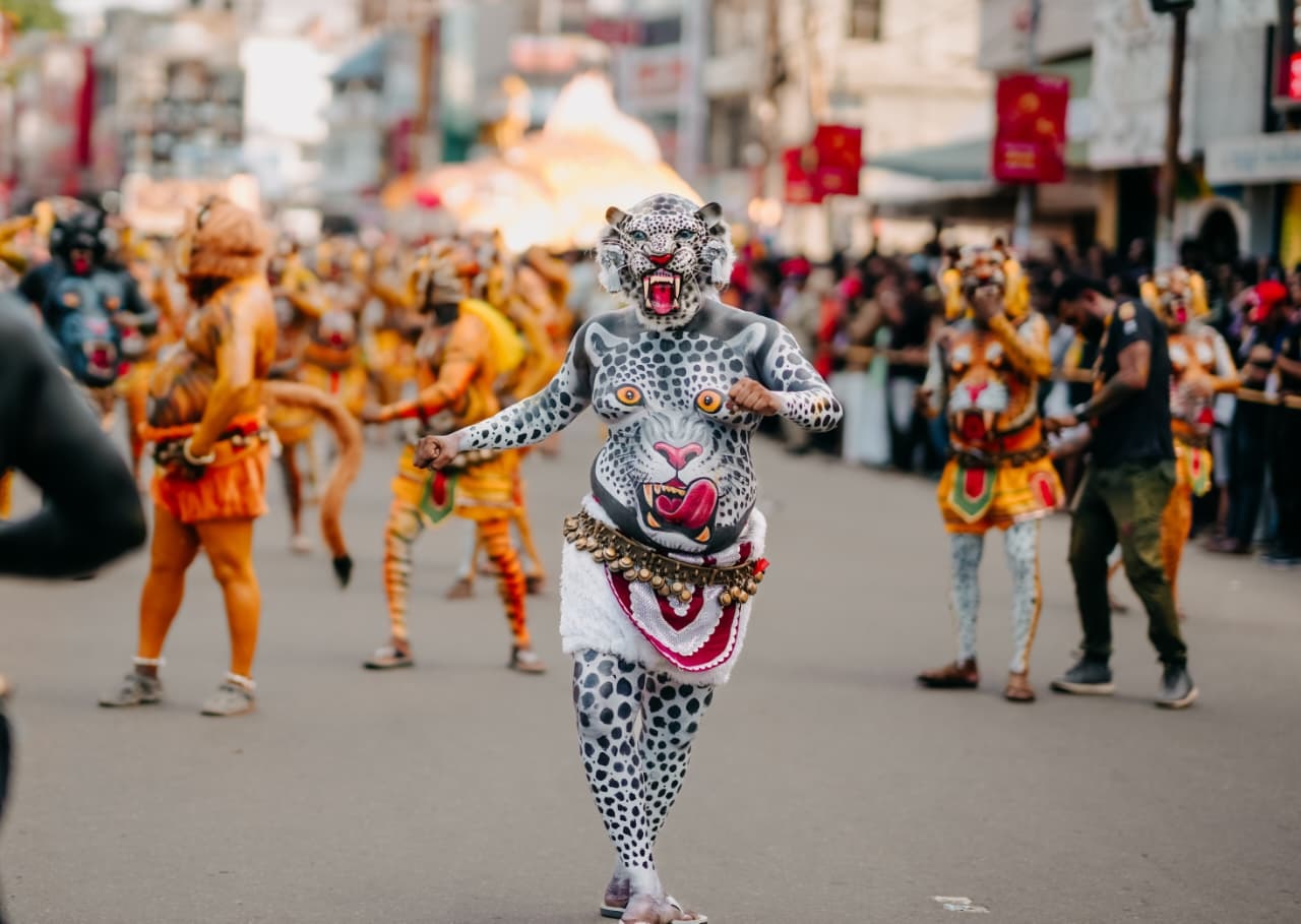 ആഘോഷങ്ങളിലെല്ലാം തനിമ നിലനിർത്തുന്ന തൃശ്ശൂരിൽ, അരമണി കിലുക്കി കുടവയർ കുലുക്കി പുലിത്താളം ചവിട്ടി സാംസ്കാരിക നഗരത്തിൻ്റെ ഹൃദയം കീഴടക്കി പുലിക്കൂട്ടങ്ങൾ. ഓണാഘോഷത്തിൻ്റെ ഭാഗമായി തൃശ്ശൂർ കോർപ്പറേഷൻ്റെ നേതൃത്വത്തിൽ സംഘടിപ്പിച്ച പുലിക്കളി നാടും നഗരവും ഏറ്റെടുത്തു. അയ്യന്തോൾ, കുട്ടൻകുളങ്ങര, സീതാറാം മിൽ ലെയ്ൻ, ചക്കാമുക്ക്, നായ്ക്കനാൽ, വിയ്യൂർ, ശങ്കരംകുളങ്ങര, വെളിയന്നൂർ, പാട്ടുരായ്ക്കൽ തുടങ്ങി ഒൻപത് ദേശങ്ങളിൽ നിന്നുള്ള പുലിക്കളി സംഘങ്ങളാണ് സ്വരാജ് റൗണ്ടിൽ അണിനിരന്നത്.