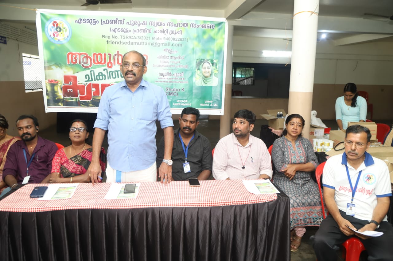എടമുട്ടം ഫ്രണ്ട്സ് പുരുഷ സ്വയസഹായ സംഘം, വലപ്പാട് വാഴൂർ ശ്രീനിവാസം വൈദ്യർ സ്മാരക സർക്കാർ ആയുർവേദ ആശുപത്രിയുമായി ചേർന്ന് സംഘടിപ്പിച്ച സംയുക്ത ആയുർവേദ ചികിത്സാ ക്യാമ്പ് ജൂലൈ 25-ാം തീയതി കമ്മാറ ഓഡിറ്റോറിയത്തിൽ വിജയകരമായി നടന്നു. രാവിലെ 9.30 മുതൽ 1.30 വരെയായ ക്യാമ്പിൽ നൂറോളം പേർ പങ്കെടുത്തു.