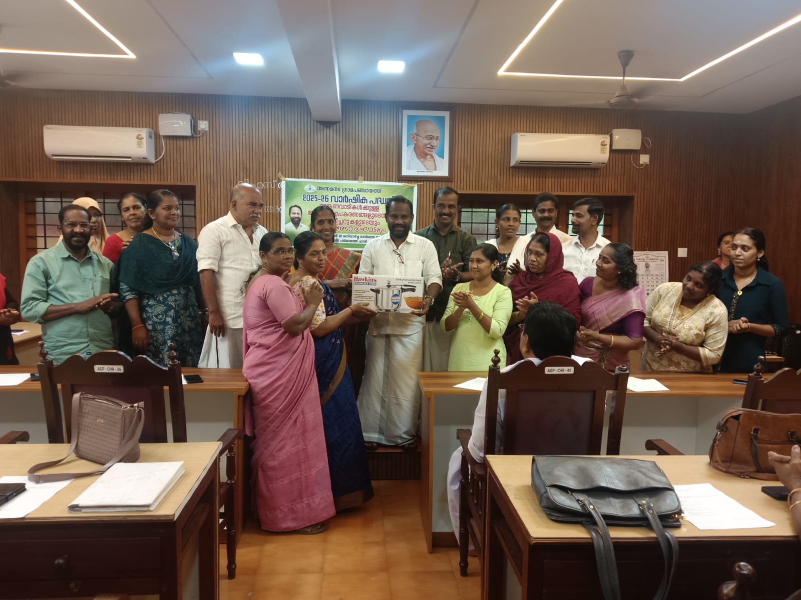 2025-26 വാർഷിക പദ്ധതിയുടെ ഭാഗമായി 31 അങ്കണവാടികൾക്കായി എട്ട് ലക്ഷം രൂപ ചെലവിലാണ് കുക്കർ, മിക്സർ ഗ്രൈൻഡർ, പാൻ, സ്റ്റീൽ ബൗൾ, സ്റ്റീൽ ഗ്ലാസ്, സ്റ്റീൽ പാത്രം, ഗ്യാസ് സ്റ്റൗ, സ്റ്റീൽ കണ്ടെയ്നറുകൾ, ഗാർഡൻ ഉപകരണങ്ങൾ എന്നിവയും അലമാര, സ്റ്റീൽ റാക്ക് തുടങ്ങിയ ഫർണിച്ചറുകളും വിതരണം ചെയ്തത്.