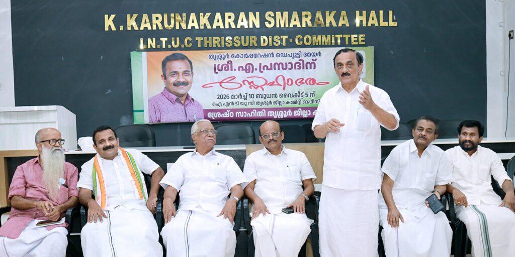 തൃശൂർ: സാംസ്കാരിക സംഘടനയായ ശ്രേഷ്ഠ സാഹിതി ജില്ലാ കമ്മിറ്റിയുടെ നേതൃത്വത്തിൽ തൃശൂർ കോർപ്പറേഷൻ ഡെപ്യൂട്ടി മേയർ എ. പ്രസാദിന് സ്വീകരണം നൽകി. സംഘടനയുടെ സജീവ പ്രവർത്തകൻ കൂടിയായ എ. പ്രസാദിനെ അദ്ദേഹത്തിന്റെ പുതിയ ഔദ്യോഗിക പദവിയിൽ ആദരിക്കാനാണ് ചടങ്ങ് സംഘടിപ്പിച്ചത്.