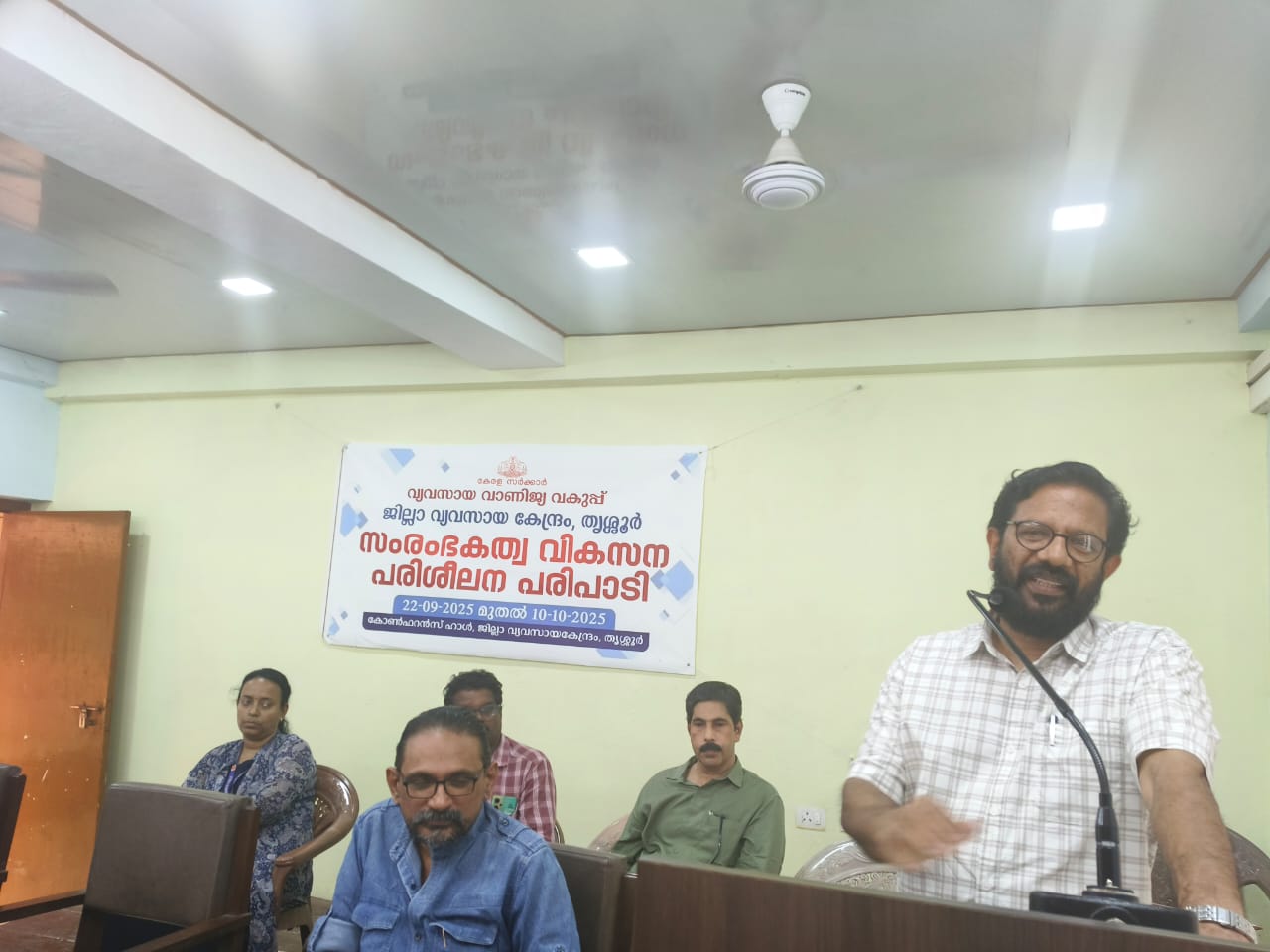 ജില്ലാ വ്യവസായ കേന്ദ്രം ജനറൽ മാനേജർ ഷീബ എസ്. അധ്യക്ഷത വഹിച്ചു. ഉപജില്ലാ വ്യവസായ ഓഫീസർമാരായ പി.ആർ. മിനി, വിശ്വൻ കോറോത്ത്, ടി. മനോജ് എന്നിവർ സംസാരിച്ചു. ഡോ. റെനി ആൻ്റണി ആദ്യ ദിനം ക്ലാസെടുത്തു. മുപ്പതിലധികം പേർ പരിപാടിയിൽ പങ്കെടുത്തു.