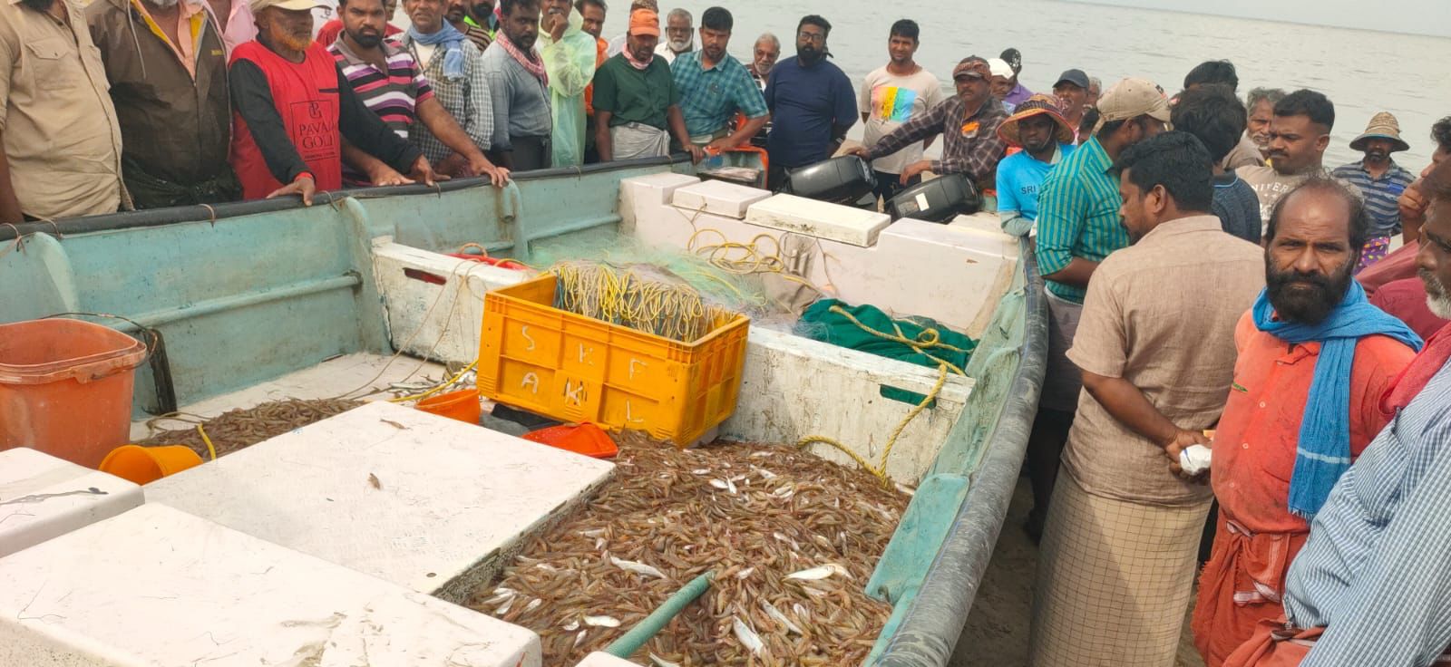 ചാവക്കാട് അണ്ടത്തോട് സ്വദേശിയായ മാമതിൻ്റെ ഉടമസ്ഥതയിലുള്ള ബദരിയ ഒന്ന്, രണ്ട് വള്ളങ്ങളും ചാവക്കാട് മണത്തല സ്വദേശിയായ രമേഷ് എന്നയാളുടെ ഉടമസ്ഥതയിലുള്ള രജിസ്ട്രേഷന് നടത്താത്ത രണ്ട് വള്ളങ്ങളുമാണ് പിടിച്ചെടുത്തത്. വള്ളത്തില് ഉണ്ടായിരുന്ന ചെമ്മീന് ലേലം ചെയ്തു കിട്ടിയ തുക സര്ക്കാരിലേക്ക് അടച്ചു. വള്ളങ്ങളുടെ ഉടമകള്ക്കെതിരെ തൃശ്ശൂര് ജില്ലാ ഫിഷറീസ് ഡെപ്യൂട്ടി ഡയറക്ടര് നിയമനടപടി പൂര്ത്തിയാക്കി പിഴ ചുമത്തും.
