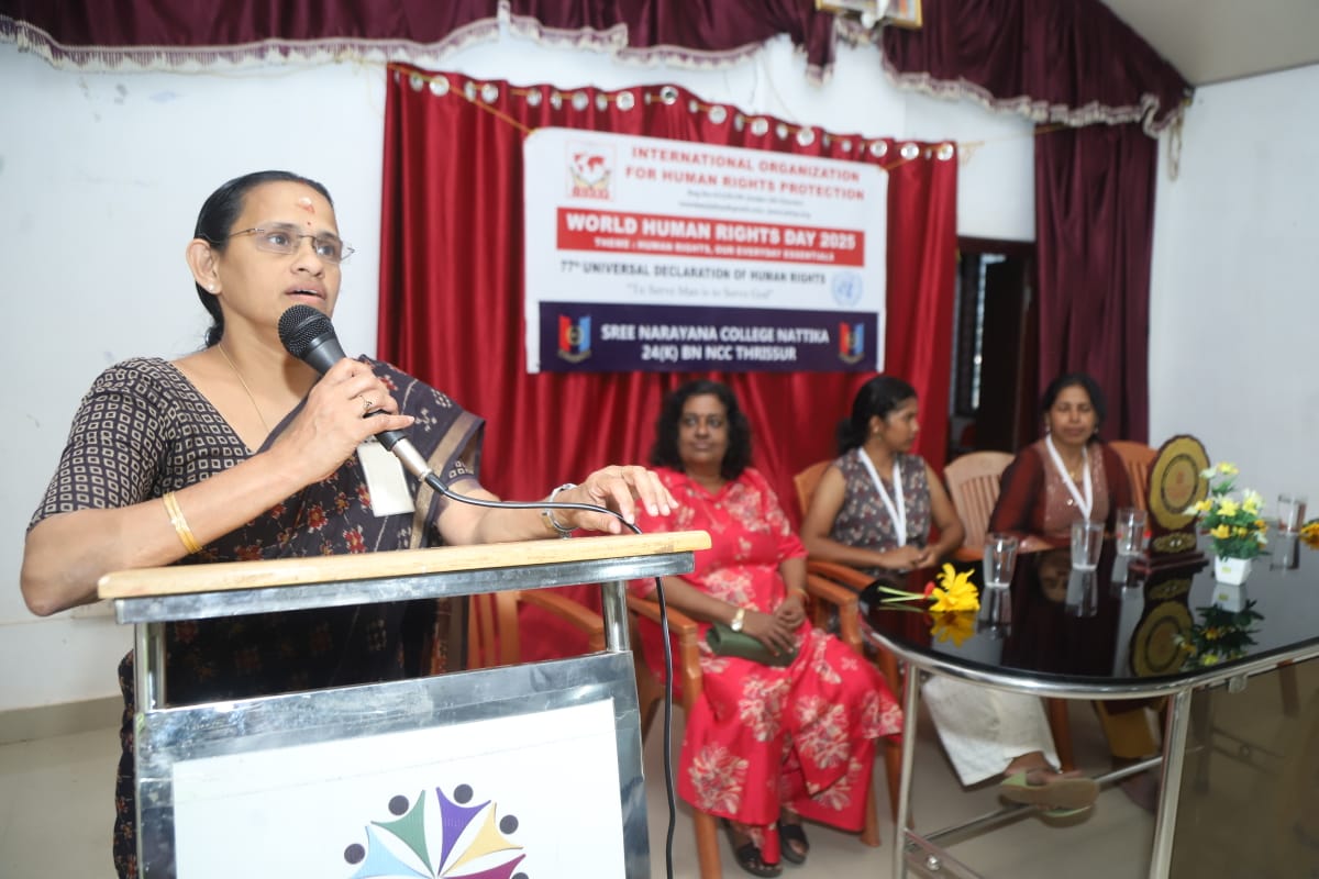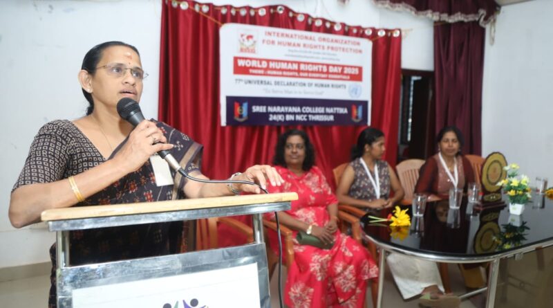 നാട്ടിക: ലോക മനുഷ്യാവകാശ ദിനത്തിൻ്റെ ഭാഗമായി, യു.എൻ അംഗീകാരത്തോടെ പ്രവർത്തിക്കുന്ന ഇൻ്റർനാഷണൽ ഓർഗാനൈസേഷൻ ഫോർ ഹ്യൂമൻ റൈറ്റ്സ് പ്രൊട്ടക്ഷൻ എന്ന സംഘടനയും ശ്രീനാരായണ കോളേജ് നാട്ടികയിലെ NCC യൂണിറ്റും ചേർന്ന് ഹ്യൂമൻ റൈറ്റ്സ് അവയർനെസ് ക്ലാസും റാലിയും സംഘടിപ്പിച്ചു.
