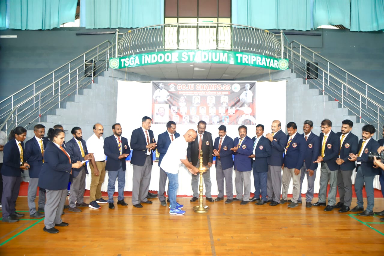തൃപ്രയാർ: കരാത്തെ ദൊ ഗോജുക്കാൻ കസോക്കു കായ് ഇന്ത്യ സംഘടിപ്പിച്ച ഇൻ്റർ ഡോജോ സൗത്ത് ഇന്ത്യൻ ചാമ്പ്യൻഷിപ്പ് GOJU CHAMPS 2025 ടി എസ് ജി എ ഇൻഡോർ സ്റ്റേഡിയത്തിൽ വെച്ച് ഗോജുക്കാൻ ഇന്ത്യ എക്സിക്യൂട്ടീവ് ഡയറക്ടർ സെൻസായ് രാജീവ് കെ എസ് ഉദ്ഘാടനം ചെയ്തു. കരാത്തെ ദൊ ഗോജുക്കാൻ കസോക്കു കായ് ഇന്ത്യ നാഷണൽ പ്രസിഡണ്ടും ചീഫ് ഇൻസ്ട്രക്ടറുമായ ക്യോഷി മധു വിശ്വനാഥ് അധ്യക്ഷത വഹിച്ച ചടങ്ങിൽ ഗോജുക്കാൻ ദേശീയ സെക്രട്ടറി മൃദുല മധു സ്വാഗതം പറഞ്ഞു. ഗോജുക്കാൻ പരിശീലകരായ സെൻസായ് ദീപക് കുമാർ എസ്, സെൻസായ് ബെന്നി പി ടി , സെൻസായ് കാർത്തിക കെ കെ എന്നിവരെ അവരുടെ മികച്ച സേവനത്തിനായി ചടങ്ങിൽ വെച്ച് ആദരിച്ചു. കേരള, തമിഴ്നാട്, കർണ്ണാടക എന്നിവടങ്ങളിലെ വിവിധ സോണുകളിൽ നിന്നുള്ള ഭാരവാഹികളായ ജോൺസൺ കെ വി, ടോംസ് വട്ടോളി , ഷിനോജ് വി ആർ , ആൻജോ കെ ജോൺ, അഖീൽ നാസിം, ആൽജോ കെ ജോൺ, വെങ്കിടേഷ് എം ആർ , രോഹിത് എസ് , നവലൻ എസ്, സിന്തിയ ബാബു, എസ് രാജ എന്നിവർ സന്നിഹിതരായിരുന്നു.