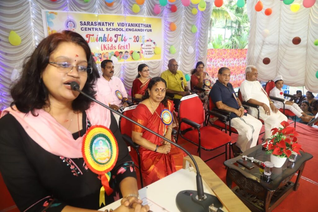 ഏങ്ങണ്ടിയൂർ: ഏങ്ങണ്ടിയൂർ സരസ്വതി വിദ്യാനികേതൻ സെൻട്രൽ സ്കൂളിൽ ശിശുദിനം ആനന്ദപൂർവ്വം ആഘോഷിക്കുന്നതിനോടനുബന്ധിച്ച് കിഡ്സ് ഫെസ്റ്റ് ‘ട്വിങ്കിൾ ടോട്ട്സ് 2025’ മംഗളമായി നടന്നു. ചെറുമിടുക്കന്മാർക്ക് തങ്ങളുടെ കഴിവുകൾ അവതരിപ്പിക്കാനുള്ള വേദിയായി മാറിയ ഈ ആഘോഷപരിപാടി നിറഞ്ഞ പങ്കാളിത്തത്തോടെയായിരുന്നു. നാട്ടിക എസ്.എൻ. കോളേജ് മലയാള വിഭാഗം അസിസ്റ്റൻ്റ് പ്രൊഫസർ ഡോ. ആര്യ വിശ്വനാഥ് കിഡ്സ് ഫെസ്റ്റിൻ്റെ ഉദ്ഘാടനകർമ്മം നിർവ്വഹിച്ചു. സ്കൂൾ മാനേജർ പി.എസ്. രാമചന്ദ്രൻ അധ്യക്ഷത വഹിച്ചു. ദീനദയാൽ ട്രസ്റ്റ് ഡയറക്ടർ ബോർഡ് അംഗം സുബ്രു പുല്ലൂട്ടിൽ മുഖ്യാതിഥിയായി. പരിപാടിയിൽ പ്രിൻസിപ്പാൾ ബിന്ദു സി സ്വാഗതമരുളി.