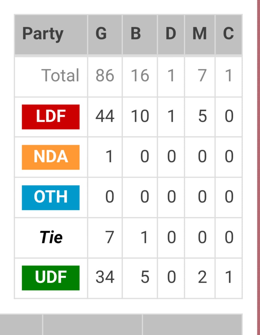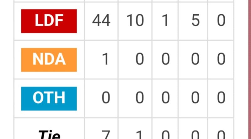 തദ്ദേശ സ്വയംഭരണ സ്ഥാപന തെരഞ്ഞെടുപ്പ് ഫലം-തൃശൂർ ജില്ല
