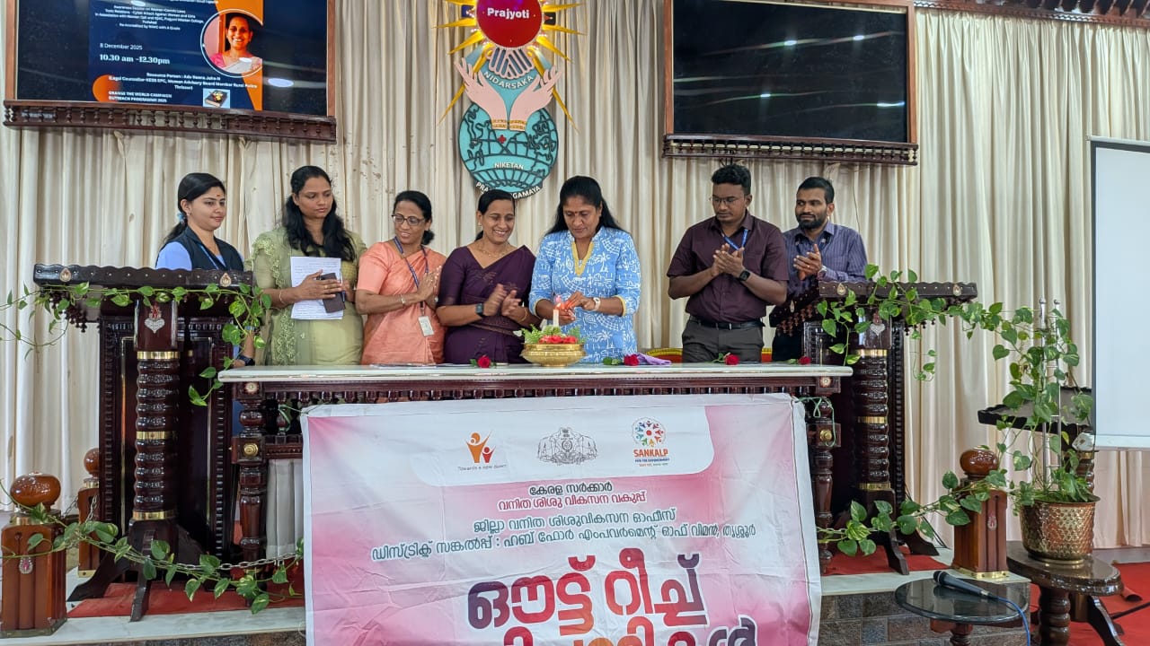 പുതുക്കാട്: സ്ത്രീകൾക്കും പെൺകുട്ടികൾക്കുമെതിരെയുള്ള അതിക്രമങ്ങൾ അവസാനിപ്പിക്കുന്നതിനായുള്ള ഓറഞ്ച് ദി വേൾഡ് ക്യാമ്പയിൻ്റെ ഔട്ട്റീച്ച് പരിപാടിയുടെ ഭാഗമായി ബോധവത്കരണ പരിപാടി സംഘടിപ്പിച്ചു. തൃശ്ശൂർ ജില്ലാ വനിതാ ശിശു വികസന ഓഫീസും ഡിസ്ട്രിക്ട് സങ്കൽപ്പ്: ഹബ് ഫോർ എംപവർമെൻ്റ് ഓഫ് വുമണും സംയുക്തമായി, പുതുക്കാട് പ്രജ്യോതി നികേതൻ കോളേജ്, ഐക്യുഎസി, വിമൻസ് സെൽ, എന്നിവയുടെ സഹകരണത്തോടെയാണ് ബോധവത്കരണ ഔട്ട്റീച്ച് സെഷൻ സംഘടിപ്പിച്ചത്.