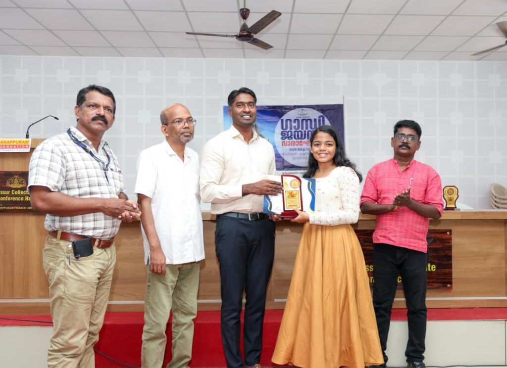 തൃശ്ശൂർ: ഗാന്ധി ജയന്തി വാരാഘോഷത്തോടനുബന്ധിച്ച് തൃശ്ശൂർ കളക്ടറേറ്റിൽ സംഘടിപ്പിച്ച പ്രസംഗ മത്സര വിജയികൾക്ക് സമ്മാനങ്ങൾ വിതരണം ചെയ്തു. സമ്മാനവിതരണം ജില്ലാ കളക്ടർ അർജുൻ പാണ്ഡ്യൻ നിർവഹിച്ചു. ജില്ലാ ഇൻഫർമേഷൻ ഓഫീസിൻ്റെ ആഭിമുഖ്യത്തിൽ ജില്ലയിലെ ഹൈസ്കൂൾ – ഹയർ സെക്കണ്ടറി വിദ്യാർത്ഥികൾക്കായി മഹാത്മജിയും നമ്മളും എന്ന വിഷയത്തിലാണ് പ്രസംഗ മത്സരം സംഘടിപ്പിച്ചത്. ഹയർ സെക്കണ്ടറി വിഭാഗത്തിൽ ഗുരുവായൂർ ലിറ്റിൽ ഫ്ലവർ കോൺവെൻ്റ് ഗേൾസ് ഹയർ സെക്കണ്ടറി സ്കൂളിലെ ഹൃതിക ധനഞ്ജയ് ഒന്നാം സ്ഥാനവും കുന്നംകുളം ജി വി എച്ച് എസ് എസിലെ സാം മാത്യു വിൽസൺ രണ്ടാം സ്ഥാനവും തൃശൂർ സെൻ്റ് ജോസഫ്സ് കോൺവെൻ്റ് ഗേൾസ് ഹയർ സെക്കണ്ടറി സ്കൂൾ വിദ്യാർത്ഥിനി ജെന്നിഫർ സനോജ് മൂന്നാം സ്ഥാനവും നേടി.