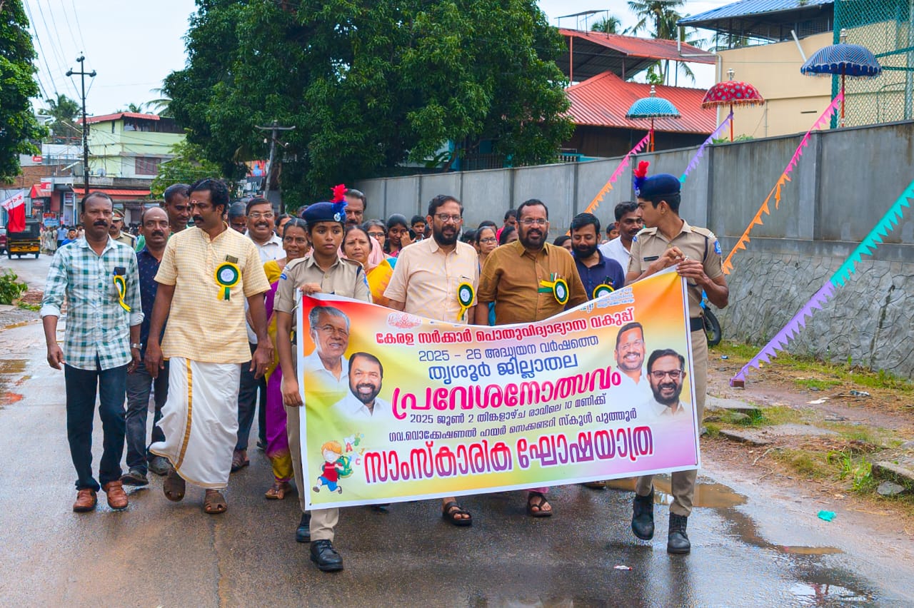 പുതുക്കാട് ഗവൺമെൻ്റ് വൊക്കേഷണൽ ഹയർ സെക്കൻഡറി സ്കൂളിൽ സംഘടിപ്പിച്ച പുതുക്കാട് മണ്ഡല തല പ്രവേശനോത്സവം കെ കെ രാമചന്ദ്രൻ എംഎൽഎ ഉദ്ഘാടനം ചെയ്തു.