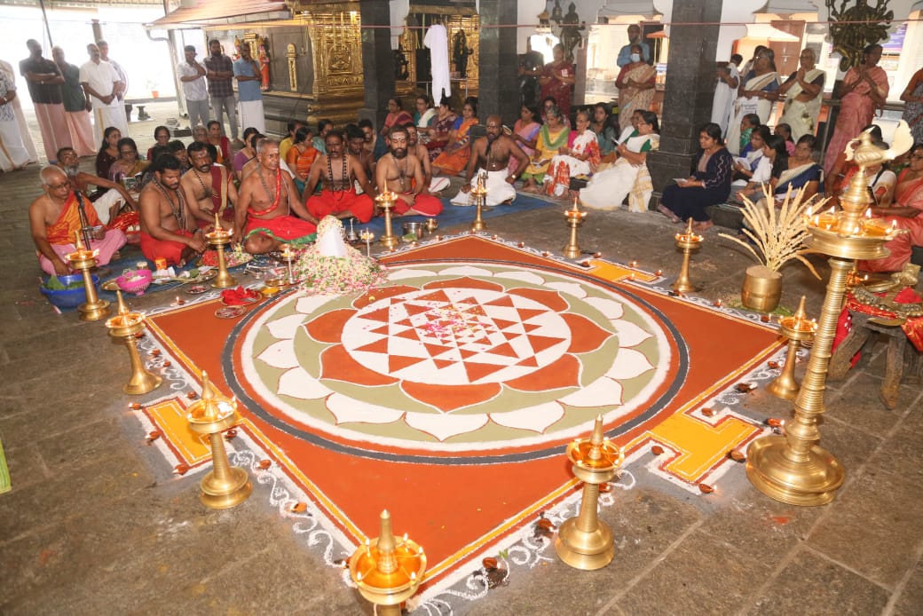 പ്രപഞ്ചത്തിലെ മുഴുവൻ ദേവതകളെയും പ്രതിനിധാനം ചെയ്യുന്ന ഏക സമഗ്ര പൂജാക്രമമായതിനാൽ ശ്രീചക്ര പൂജയ്ക്ക് പ്രത്യേക പവിത്രതയുണ്ട്. അനങ്ങാനന്ദന്ഥമണ്ഡലി അർച്ചന സാധനാ കേന്ദ്രം, കുഴൂർ മാളയിലെ യാഗാനന്ദനാഥൻ തന്ത്രികളുടെ മുഖ്യകാർമ്മികതയിൽ ചടങ്ങുകൾ ശ്രുതിയുടെയും ശുദ്ധിയുടെയും സമന്വയത്തോടെ നടന്നു.