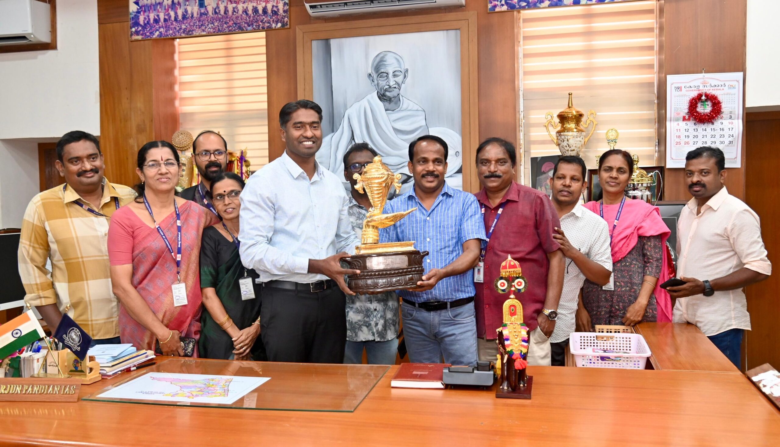 തൃശൂർ: സംസ്ഥാന സ്കൂൾ കലോത്സവത്തിൽ ഏറ്റവും കൂടുതൽ പോയിൻ്റ് നേടി വിജയികളാകുന്ന ജില്ലക്ക് നൽകുന്ന സ്വർണകപ്പിൻ്റെ ജില്ലകൾ തോറുമുള്ള പര്യടനം ഇന്ന് കാസർഗോഡ് നിന്ന് ആരംഭിക്കും. തിരുവനന്തപുരത്ത് നടന്ന അറുപത്തിമൂന്നാമത് സംസ്ഥാന സ്കൂൾ കലോത്സവത്തിൽ തൃശൂർ ജില്ലയാണ് ഏറ്റവും കൂടുതൽ പോയിൻ്റ് നേടി സ്വർണക്കപ്പ് സ്വന്തമാക്കിയത്. ജില്ലാ ട്രഷറിയിൽ സൂക്ഷിച്ചിരുന്ന സ്വർണ്ണക്കപ്പ് ജില്ലാ കളക്ടർ അർജുൻ പാണ്ഡ്യൻ പൊതു വിദ്യാഭ്യാസ വകുപ്പ് ജോയിൻ്റ് കമ്മീഷണർ ഡോ. ഗിരീഷ് ചോലയിലിന് കൈമാറി. 13 ജില്ലകളിലെ പര്യടനത്തിന് ശേഷം പന്ത്രണ്ടാം തീയതി സ്വർണ്ണക്കപ്പ് തൃശൂർ ജില്ലയിൽ തിരിച്ചെത്തും.