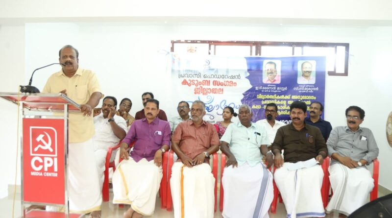 തൃശൂർ: പ്രവാസി ഫെഡറേഷൻ ജില്ലാ കുടുംബ സംഗമവും കലാസാംസ്കാരിക-വിദ്യാഭ്യാസ രംഗത്തെ പ്രവാസികളെ ആദരിക്കുന്ന ചടങ്ങും സംഘടിപ്പിച്ചു. ചടങ്ങിൽ സംസ്ഥാന ജനറൽ സെക്രട്ടറി E T ടൈസൺ മാഷ് എംഎൽഎ എമിഗ്രേഷൻ ഫണ്ട് പ്രവാസി ക്ഷേമത്തിന് വിനിയോഗിക്കണമെന്ന് ആവശ്യപ്പെട്ടു. കിഷോർ വാഴപ്പുള്ളി ചടങ്ങ് അധ്യക്ഷനായി, പ്രകാശൻ കരാട്ടുപറമ്പിൽ സ്വാഗതം പറഞ്ഞു. വിവിധ നേതാക്കളും വിവിധ മേഖലകളിലെ പ്രവാസികളും പരിപാടിയിൽ പങ്കെടുത്തു. സിപിഐ ജില്ലാ എക്സിക്യൂട്ടീവ് അംഗം കെ പി സന്ദീപ്, സിപിഐ നാട്ടിക മണ്ഡലം സെക്രട്ടറി കെ എം കിഷോർ കുമാർ, ജില്ലാപ്രവാസി ഫെഡറേഷൻ സംസ്ഥാന വൈസ് പ്രസിഡണ്ട് വി കെ സുലൈമാൻ, ജില്ലാ സെക്രട്ടറി A സജീവ്, സംസ്ഥാന എക്സിക്യൂട്ടീവ് അംഗം അഭിലാഷ് ചന്ദ്രൻ, നാട്ടിക മണ്ഡലം സെക്രട്ടറിയേറ്റ് അംഗം എം വി സുരേഷ്, പ്രവാസി സംസ്ഥാന കമ്മിറ്റി അംഗം അബ്ദുൾ സമദ് എന്നിവർ സംസാരിച്ചു. ജില്ലാ കമ്മിറ്റി അംഗങ്ങളായ ലാൽ കച്ചിലം, പി എൻ സുചിന്ദ്, വിജയരാഘവൻ, ENR കൃഷ്ണൻ, സാജൻ എന്നിവരും പരിപാടിയിൽ പങ്കെടുത്തു. പരിപാടിയിൽ കലാസാംസ്കാരിക വിദ്യാഭ്യാസ പ്രവാസി രംഗത്തുള്ളവരെ ആദരിച്ചു. ആദരിക്കപ്പെട്ടവരിൽ മണലൂർ ഗോപിനാഥ് ഓട്ടൻതുള്ളൽ ആചാര്യൻ, തീർത്ത വിവേക് ബാല കവിയത്രി, അഫ്രിൻ ഫാത്തിമ (ഭിന്നശേഷി സൗന്ദര്യമത്സരത്തിൽ സ്റ്റേറ്റ് വിന്നർ), സലിം ചാമക്കാല (പ്രമുഖ എഴുത്തുകാരൻ), കിഷോർ കാർത്തികേയൻ, ദിലീപ് പത്മനാഭൻ, പി എസ് സുഗതൻ (പ്രമുഖ പ്രവാസി വ്യവസായികൾ), കൃഷ്ണശ്രീ മധുലാൽ (പ്ലസ് ടു പരീക്ഷയിൽ ഫുൾ എ പ്ലസ്) എന്നിവരും ഉണ്ടായിരുന്നു. തുടർന്ന് ഇസൈ മലർ ബാൻഡിൻ്റെ ഗാനമേളയും ഉണ്ടായിരുന്നു.