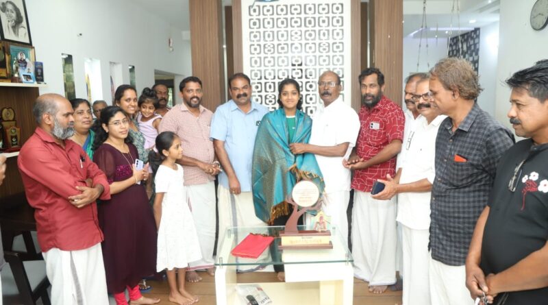 നീന്തലിലെ വേഗക്കാരിക്ക് അനുമോദനവുമായി തൃപ്രയാർ സർഗ്ഗ സംസ്കൃതി