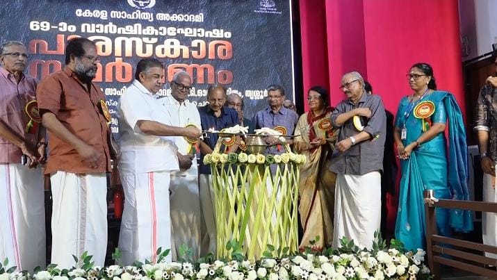 വിശിഷ്ടാംഗത്വം, സമഗ്ര സംഭാവന പുരസ്കാര ജേതാക്കൾക്ക് അവാർഡ് സമർപ്പിക്കുന്ന ചടങ്ങിൽ പി. ബാലചന്ദ്രൻ എം.എൽ.എ. അധ്യക്ഷനായിരുന്നു. ആലങ്കോട് ലീലാകൃഷ്ണൻ പുരസ്കാരജേതാക്കളെ പരിചയപ്പെടുത്തി. എം.കെ. മനോഹരൻ പ്രശസ്തിപത്രം വായിച്ചു. വൈസ് പ്രസിഡൻ്റ് അശോകൻ ചരുവിൽ, വി.എസ്. ബിന്ദു എന്നിവർ ആശംസകൾ അർപ്പിച്ചു. സെക്രട്ടറി സി.പി. അബൂബക്കർ സ്വാഗതവും മാനേജർ പി.കെ. മിനി നന്ദിയും അറിയിച്ചു. സാഹിത്യ അക്കാദമി അവാർഡ് ജേതാക്കളെ പങ്കെടുപ്പിച്ച് ‘ഭാഷയിലെ ഭാഷകൾ’ എന്ന വിഷയത്തിൽ ഡോ. കാവുമ്പായി ബാലകൃഷ്ണൻ്റെ അധ്യക്ഷതയിൽ സംവാദം നടന്നു. വൈകിട്ട് നടന്ന ചടങ്ങിൽ പ്രസിഡന്റ് സച്ചിദാനന്ദൻ അക്കാദമി അവാർഡുകളും എൻഡോവ്മെൻ്റ് അവാർഡുകളും സമർപ്പിച്ചു. അശോകൻ ചരുവിൽ അധ്യക്ഷനായിരുന്നു. അതേസമയം, നാടകത്തിനും നാടകകലാപ്രതിഭകൾക്കും സർക്കാർ വലിയ പ്രോത്സാഹനമാണ് നൽകുന്നതെന്ന് മന്ത്രി സജി ചെറിയാൻ പറഞ്ഞു. കേരള സംഗീത നാടക അക്കാദമി സംസ്ഥാന പ്രൊഫഷണൽ നാടക അവാർഡ് 2024 സമർപ്പണ ചടങ്ങ് ഉദ്ഘാടനം ചെയ്ത് സംസാരിക്കുകയായിരുന്നു മന്ത്രി. ഇന്ത്യയിൽ മറ്റെവിടെയും ഇല്ലാത്ത കലാകാരന്മാർക്കുള്ള പെൻഷനും ഇൻഷുറൻസും കേരളത്തിൽ സർക്കാർ നൽകുന്നുണ്ടെന്നും മൂന്ന് സ്ഥിരം തിയേറ്ററുകൾ സ്ഥാപിച്ച് നാടകങ്ങൾ ദിവസേന അവതരിപ്പിക്കുന്ന പദ്ധതിക്ക് തുടക്കം കുറിച്ചതായും മന്ത്രി അറിയിച്ചു.