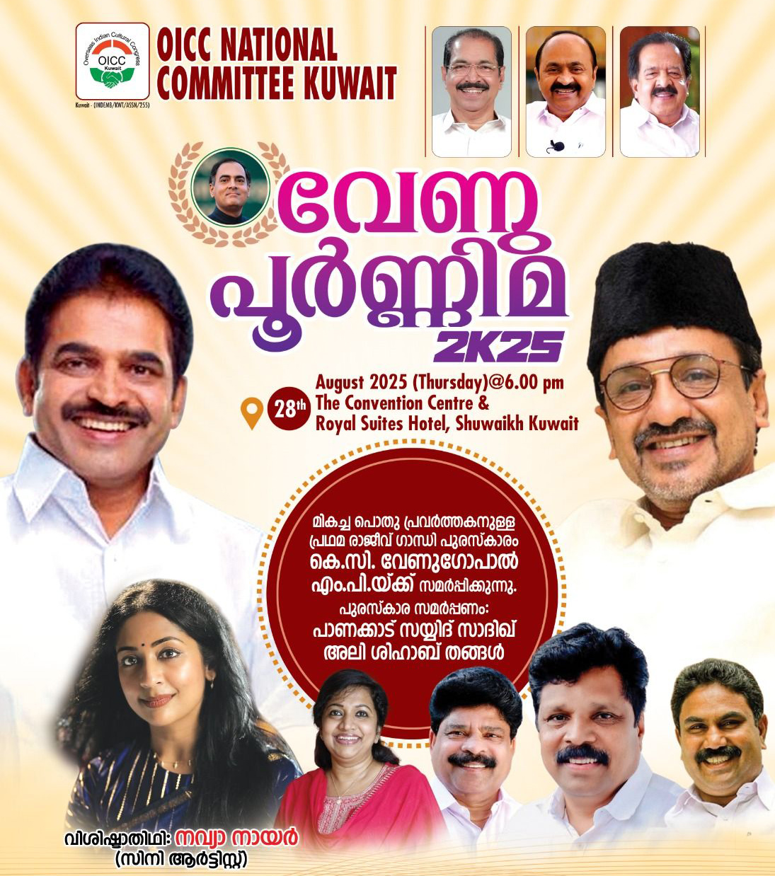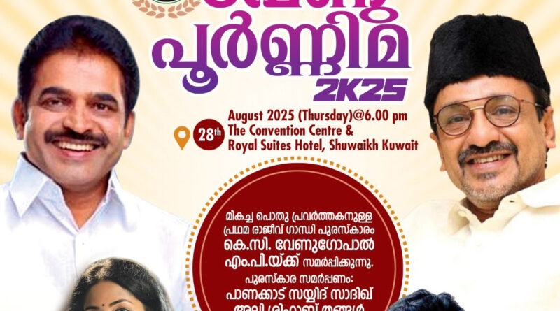എ ഐ സി സി ജനറൽ സെക്രട്ടറി കെ സി വേണുഗോപാലിനെയും പാണക്കാട് സയ്യിദ് സാദിഖ് അലി ശിഹാബ് തങ്ങളെയും വരവേൽക്കാൻ കുവൈറ്റ് ഒരുങ്ങി